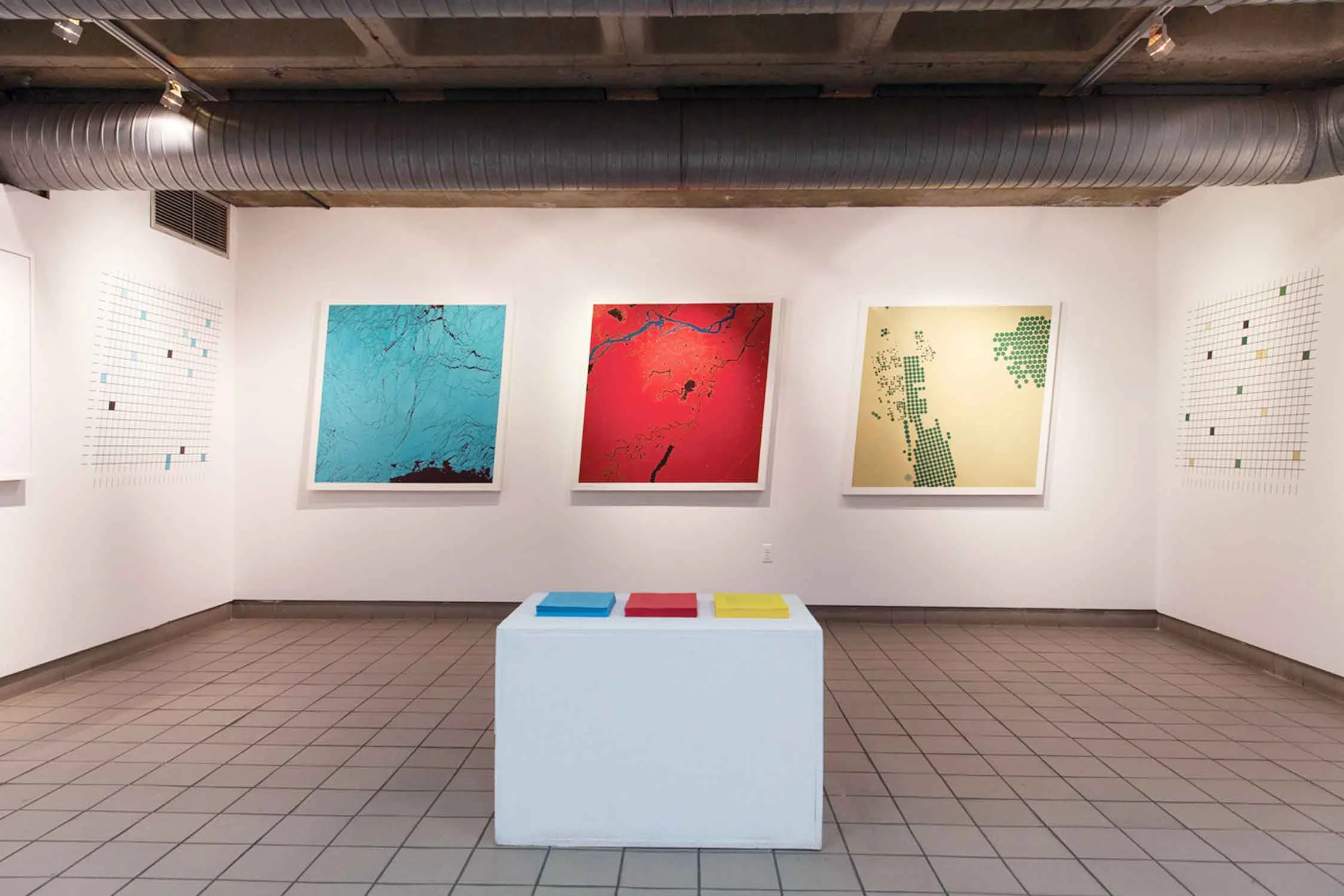Condition Report: Deregulation is a cycle of three paintings based on LANDSAT satellite photographs published by NASA in the 1970s. The images depicted Antarctica, the Amazon, and a desert concealing underground aquifers. Rendered in blue, red, and yellow—the primary colors emphasized by LANDSAT’s heat-sensor imaging system—the works foregrounded color as both an optical and political code. While these technologies were presented as tools of scientific knowledge, they were also instruments of surveillance, designed to map natural resources for potential extraction and commodification.